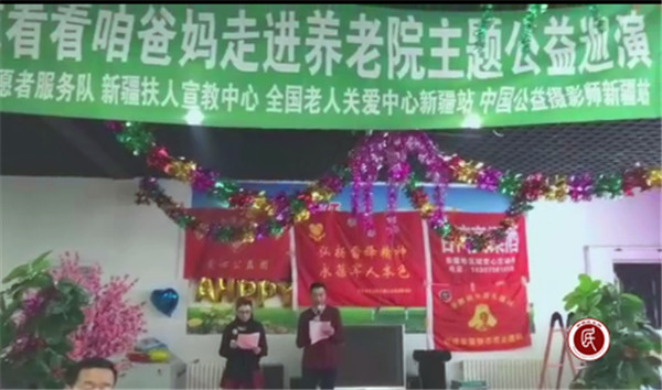 1月28日是中国传统春节的大年初一一大早,正当大多数人与家人团聚之时,乌鲁木齐经济技术开发区(头屯河区)文明办、新疆旅游出租汽车集团公司、乌鲁木齐志愿者协会、乌鲁木齐沙依巴克区爱心公益团、乌鲁木齐退伍兵志愿者服务队等多部门单位开展“回家路·欢度佳节爱同行”公益活动走进位于该区城北主干道三宫六队的伊天园敬老院,他们专程组织了书法家、歌舞演员等文化志愿者带着牛奶、水果等慰问品携手爱心企业家一起看望了居住在这里的回民老人,为老人们送来了欢乐。