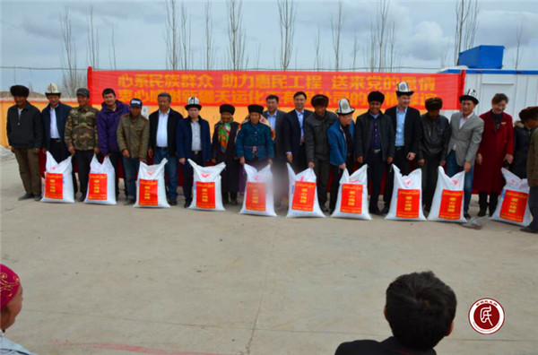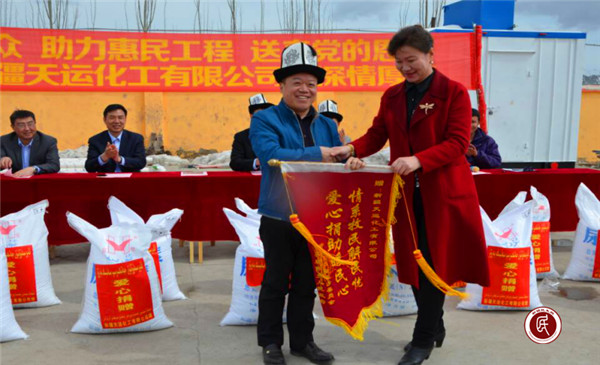 新疆民生网讯 (通讯员 王飞 何波)3月19日,新疆天运化工有限公司向阿克陶县克孜勒陶乡捐赠60吨尿素仪式在该乡塔尔开其克村举行。