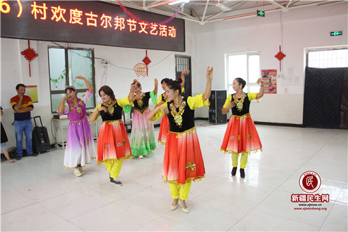 新疆民生网(宋海翔)8月12日,莎车县荒地镇英巴格村村民活动中心内洋溢着村民的欢声笑语、热闹非凡,掌声喝彩声此起彼伏。自治区信息中心驻村工作队、村“两委”组织村民在这里齐聚一堂,举办“民族团结一家亲”暨“欢度古尔邦节文艺活动”。活动中村文艺队展现了他们精心准备的舞蹈和歌唱节目,抒发了大家感党恩、团结致富奔小康的情怀。