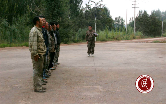 (图为肖和拉提对新招保安进行队列训练)