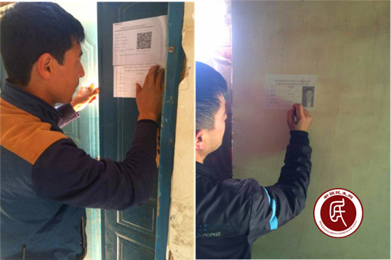 (包户干部在张贴包户联系卡)
