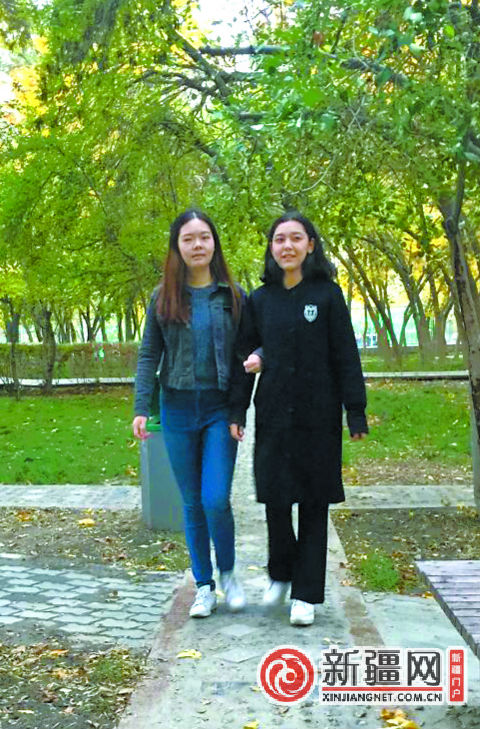 学习完毕,迪丽那孜·吐尔洪最喜欢和贺首静在校园漫步 (新疆网记者梁淑芳摄)