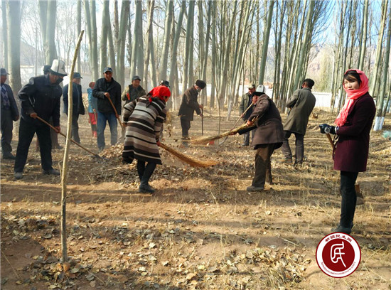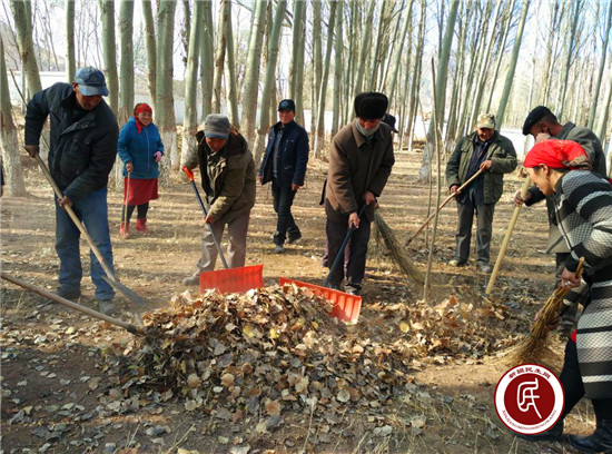 于是,在乡政府的号召下,乡里的干部、村委会成员、牧民群众纷纷加入到扫落叶的队伍当中。大家或是用扫把扫,抑或是用铲子铲,更有许多可爱的牧民群众拿来了大袋子,将落叶装回家喂牲畜。