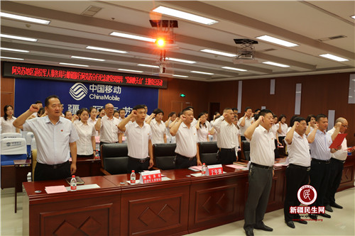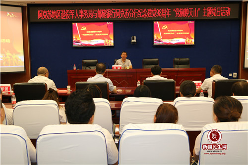 新疆民生网(王真)为纪念中国共产党成立98周年,共同回顾党的光辉历史,弘扬党的丰功伟绩,进一步激励广大党员不忘初心,牢记使命,爱党爱国,发挥共产党员在实现新疆社会稳定和长治久安总目标中的先锋模范作用,6月27日,邮储银行阿克苏地区分行与阿克苏地区退役军人事务局联合开展纪念建党98周年“党旗映天山”主题党日活动。来自邮储银行阿克苏地区分行和地区退役军人事务局的全体党员、入党积极分子100余人参加了活动。