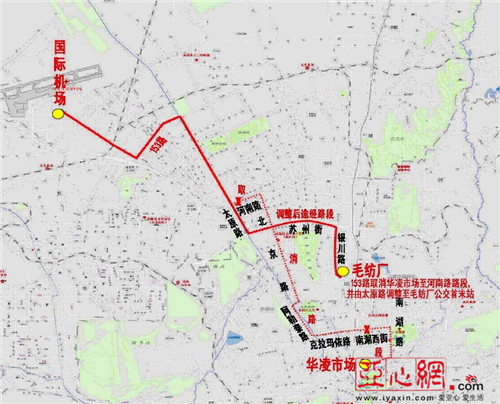 153路调整为北至迎宾路国际机场首末站,南至毛纺厂首末站。取消河南路、北京路、新医路、阿勒泰路、克拉玛依路、南湖西路、南湖南路、西虹路路段,调整为迎宾路、喀什路、太原路、苏州路、银川路、西八家户路。调整后153路全长13.7km,非直线系数降为1.32,发车间隔5至6分钟,配车25辆。设置中途停靠站点26座。