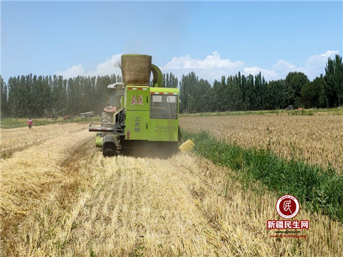 新疆民生网(邓河丹、古丽扎帕尔·巴拉提)麦浪翻滚,机器轰鸣,金灿灿的麦粒从收割机中“喷涌”而出,一派丰收的景象。这标志着拜城县康其乡全乡小麦主产区夏收工作全面展开,紧张的夏收、夏种、夏管“三夏”战役全面打响。