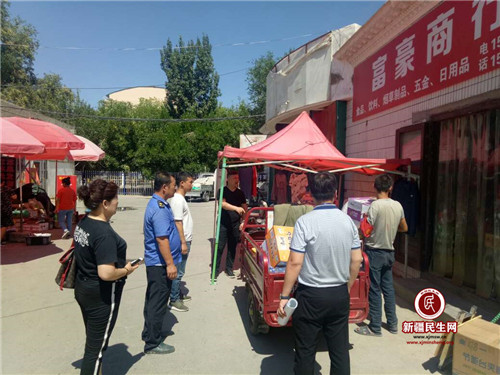 新疆民生网(王东生)为进一步强化辖区生产经营单位安全监管,严格落实安全生产责任,坚决防范各类安全事故发生,切实做好夏季高温期间的安全生产工作。7月6日,克拉玛依市白碱滩区金龙镇街道联合区市场监督管理局、区城市管理局、区卫健委对辖区市场等人员密集场所开展大检查、大整顿。