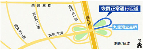 据了解,受杆线入地施工影响的除了九家湾立交桥以外,还有西环中路。