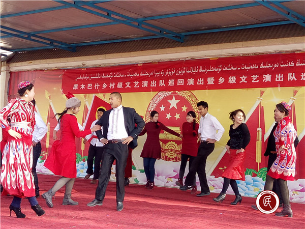 阿克苏市库木巴什乡全乡14个行政村的文艺演出队分别登台演出了由村民自编自导的文艺节目。节目精彩纷呈,歌舞《爱我中华》、《最美的还是我们新疆》等唱出了广大村民热爱伟大祖国、民族团结一家亲的美好心愿。
