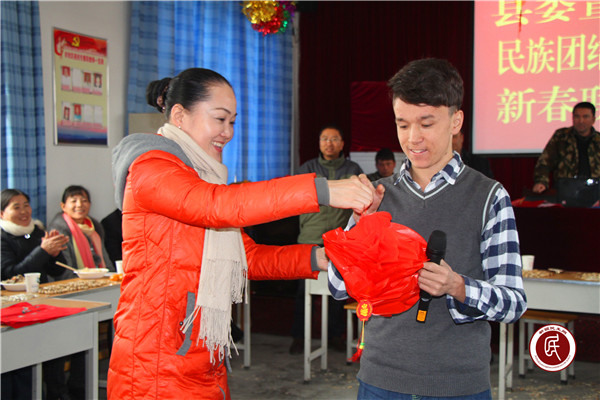 新疆民生网讯 (通讯员 方婷婷)吉祥的春联贴起来、火红灯笼挂起来、欢快的舞蹈跳起来、热情的诗歌诵起来……1月22日,温宿县委宣传部与恰格拉克乡苏亚克斯村共同举办“民族团结一家亲新春联谊会”。党员干部与结对认亲的亲戚、村干部、“四老”及群众代表、“访惠聚”驻村工作队围坐在该村文化礼堂,共同观看干部村民自编自演的文艺节目,大家载歌载舞,畅叙民族团结情。