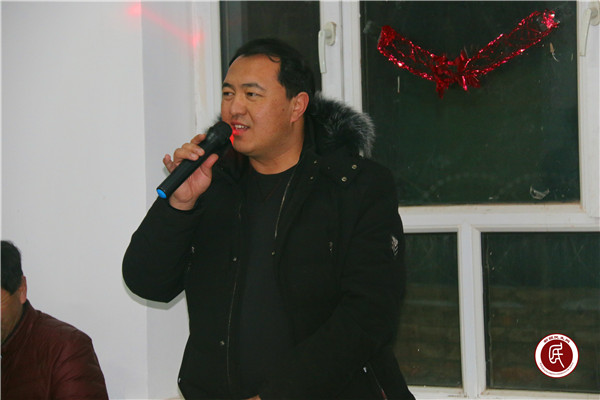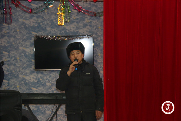 (图为乡党委书记托呼托库力·波衣丁为新春晚会致辞)