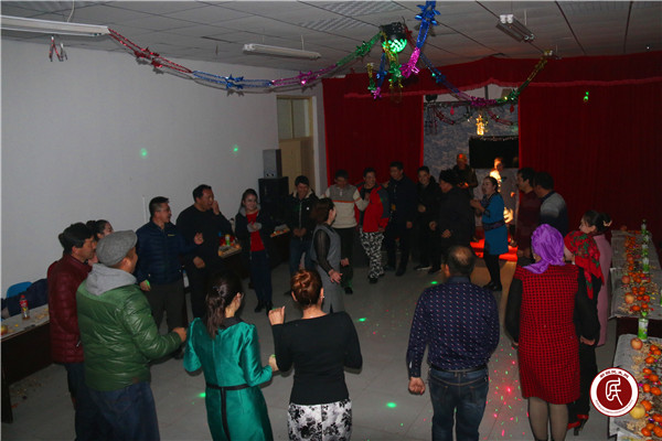 在随后两个多小时的联欢会中,有歌曲、舞蹈等节目表演,现场喝彩声不断,掌声阵阵。而其中的各种互动跳舞节目,一次次将联欢会的气氛推向一个又一个高潮。