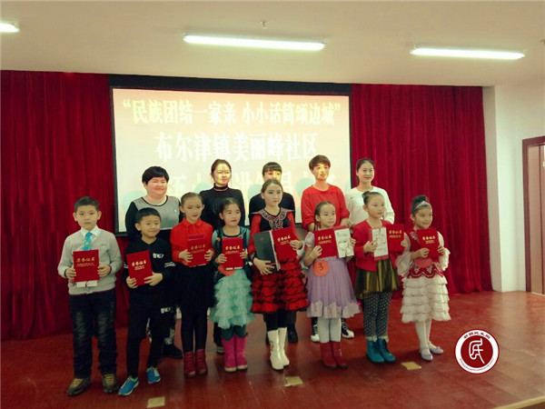 新疆民生网讯 (通讯员 古丽建)2月6日下午,布尔津县布尔津镇美丽峰社区举办首届“民族团结一家亲,小小话筒颂边城”双语讲解员大赛,为广大青少年提供了一个了解家乡,展示自我才艺的平台,有效推动学生社区文化建设工作。 比赛分为自我介绍、讲解、问答题、才艺表演四个环节进行。由海选出的8名选手参赛。最终,评出了一二三等奖和优秀奖。荣获一等奖的3号选手阿茹娜说:“今天我很高兴获奖,感谢社区给我们一个展示自我的平台。”