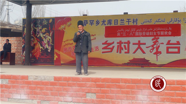 随着主持人一声“比赛开始”,村民趣味体育竞赛开始了,这些平时在家带孩子、做家务的农家妇女纷纷上场展示自己的风采,她们踊跃参加拔河、踩气球、端乒乓球跑、画鼻子、抢凳子等比赛活动,还带来了自编自演的舞蹈,现场气氛活跃,歌声、笑声不断,洋溢着节日的喜庆。在活动即将结束时,一位胡子花白的维吾尔族老大爷给我们带来了“意外之喜”,他主动要求上台为大家演唱一首自己填词的歌曲——《党的恩情如父母》,歌词中唱到:“世上只有父母好,党的恩情比父母还要深,我要把这些告诉儿孙们,让他们紧跟共产党。共产党亚克西!”动情的歌声引来台下阵阵热烈的掌声。活动还表彰了村里一批“好媳妇、好婆婆”,工作组鼓励她们坚持“自尊、自信、自立、自强,用勤劳的双手,尽快脱贫致富,建设好美丽乡村”。