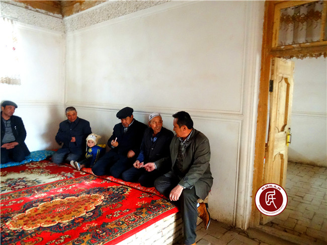 在癌症患者玉素甫·居买家中,住村工作组总领队努尔卡那提·艾木如拉同志关切询问了他的生活、身体等情况,鼓励其要树立生活信心,努力战胜病魔。并表示在春耕来临之即,将尽最大努力帮助他们解决实际生活上的困难。
