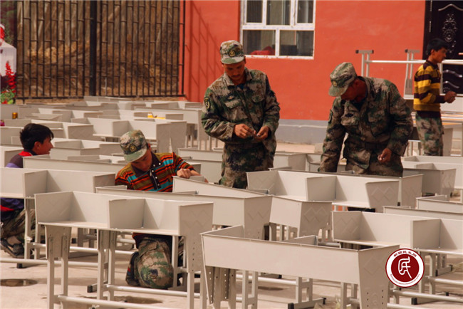 桌椅到了,可是还需要组装,村里距县城远,没有组装工人,3月19日刚好有村民办婚礼,怎么办?工作组组长孙斌当即决定发动青年团员在工作组的指导下进行安装,于是紧急联系村团支部书记召集部分团员将安装工作开展起来。工作紧张有序的进行,附近的村民看到之后,也积极的凑上来参与到其中,经过近一天的努力将座椅安装完毕,桌椅摆放到了村民服务中心,当看到摆放方式不合适后,工作组指导村民对桌子重新摆放,以便于婚礼待客时使用。
