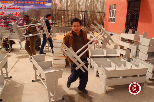 新疆民生网讯,3月18日上午,自治区发展改革委住克孜勒塔木管委会克孜勒塔木村(1村)“访惠聚”活动工作组为村民服务中心联系的捐赠桌椅到货了。工作组2月25日住村以来得知村民服务中心没有桌椅,村民每次举办婚礼不方便后,这件让工作组一直操心的事情终于解决了。