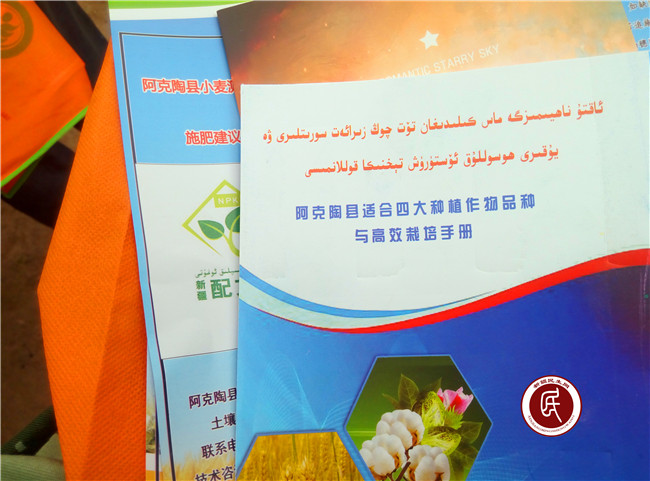 (图为工县农业技术推广中心的专家发放的科学种植资料)