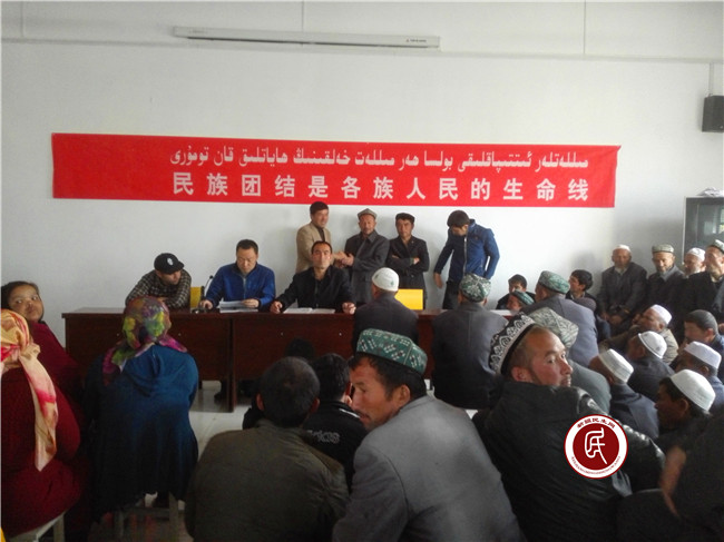 宣讲会上,工作组组长周泽恩传达了张春贤书记在自治区“民族团结进步年”动员大会上的重要讲话精神,村支书带领村民学习了维文版的具体内容。