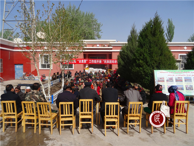 新疆民生网讯   4月14日,克州人社局住玉麦乡喀什艾日克村工作组聚焦“1235”目标任务,围绕“三项重点工作”, 发挥好理论政策宣传员作用,开展了“民族团结进步年”主题宣传活动。全村党员干部、大学生村官、村警、宗教人士、村民等共280余名村民参加了活动。