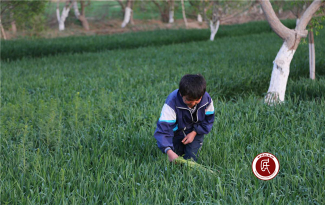 我们眼前的这个孩子14岁,是萨罕乡中学的一名初一学生,家里除了爸爸、妈妈还有一个上大学的哥哥,爸爸在巴扎上卖羊肉,妈妈生病在家,他现在是家里唯一一个可以到地里干活的人了。前几天妈妈告诉他“麦子地里的草该拔了,别人家的都拔完了,再不拔就会影响结麦穗了……”,所以,这几天中午、下午放了学他就到地里拔草,总共5亩地的麦子,除了我们眼前这一小片没拔草的地,其他的地他一个人全部拔完了。当我们笑着问他干活累不累时,他也一样笑着告诉我们“累,但是我和哥哥上学需要很多钱,爸爸白天卖羊肉赚钱没有时间,妈妈最近生病了也不能干活,只能我来干了,拔草我会干呢……”。