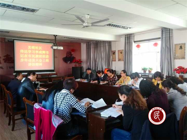 昌吉市光明社区工作组制定了“三个一”办法加强学习与贯彻会议精神,即指定一名专职民族政策宣讲员、撰写一篇关于民族团结的心得体会、组织一场关于民族团结教育的专题党课,多角度的提升居民和工作组成员对民族团结政策的理解,做好民族团结教育的宣讲员、实践者和带头人。