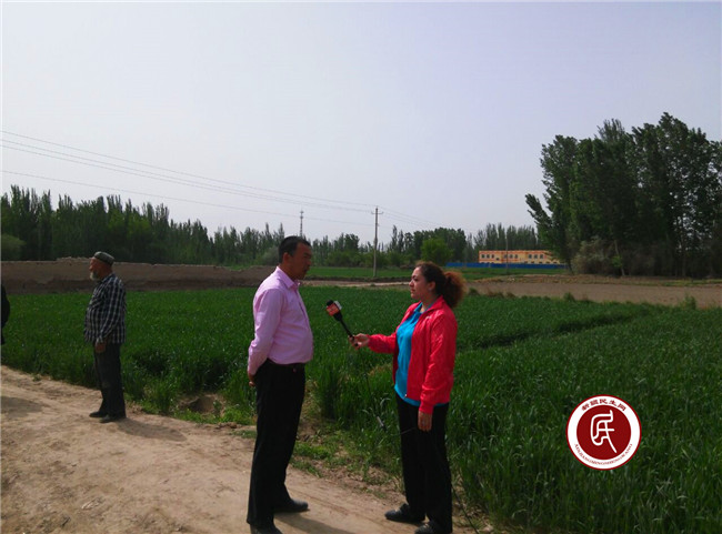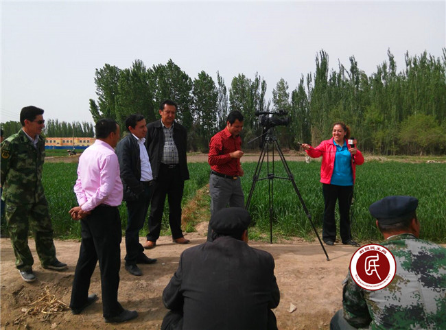 (图为新疆电视台记者跟随克州人社局住9村工作组来到田间地头准备采访)