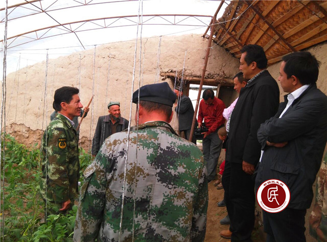 (图为新疆电视台记者跟随克州人社局住9村工作组了解设施大棚的生产情况)
