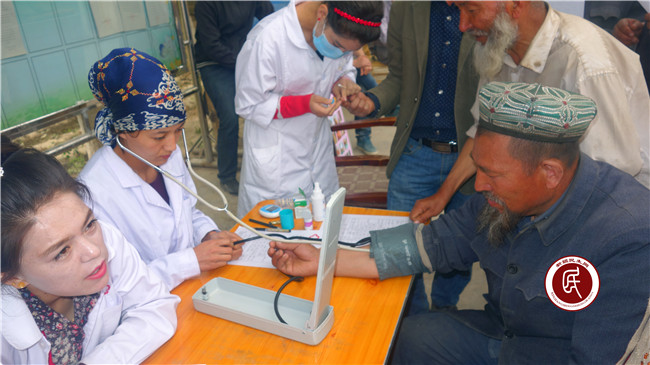 新疆民生网讯(通讯员 艾依塔吉) 4月27日,阿克陶县人社局住玉麦乡库尔巴格村“访惠聚”活动工作组在组长闫景来的带领下,协助乡卫生院医生为库尔巴格村60岁以上老人(共计90余人)免费体检。工作组精心组织、积极参与此次活动,用自己的汗水换来了村民的笑容。