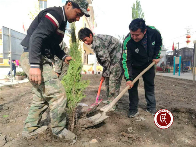 新疆民生网讯 (通讯员 徐大伟)这几天,托普鲁克乡克力坪兰干村的村民们一直在村委会院内、百姓大舞台周围花坛挖坑、种树,紧张忙碌着。原来是自治区发展改革委住英吉沙县托普鲁克乡克力坪兰干村(3村)工作组支持当地建设美丽乡村,为村民打造优美舒适的活动环境,工作组组长阿不都沙拉木·依马木专门在县城协调解决了1.2万柏树苗用于绿化百姓大舞台周边环境。