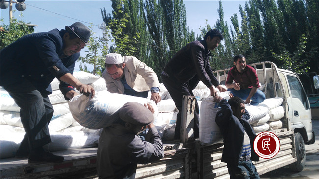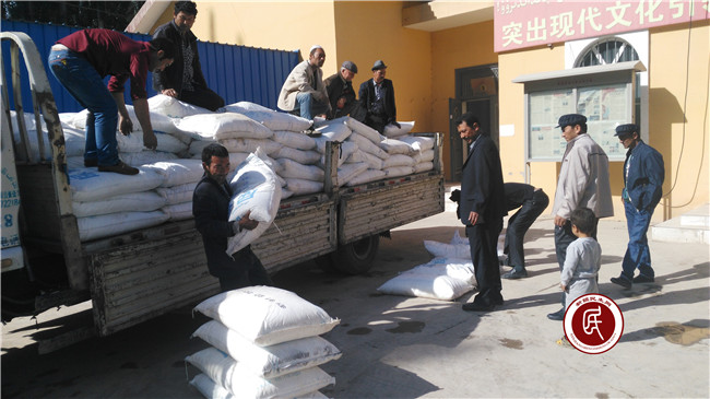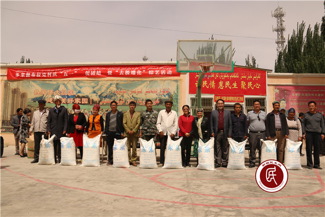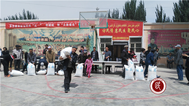 新疆民生网讯  4月30日,乌恰县人社局住村工作组联合村委会开展迎“五·一”促团结 暨“去极端化”文体活动,人社局免费为村民发放了8吨化肥,1吨面粉,对口帮扶单位中国人民银行也送来了面粉和清油。