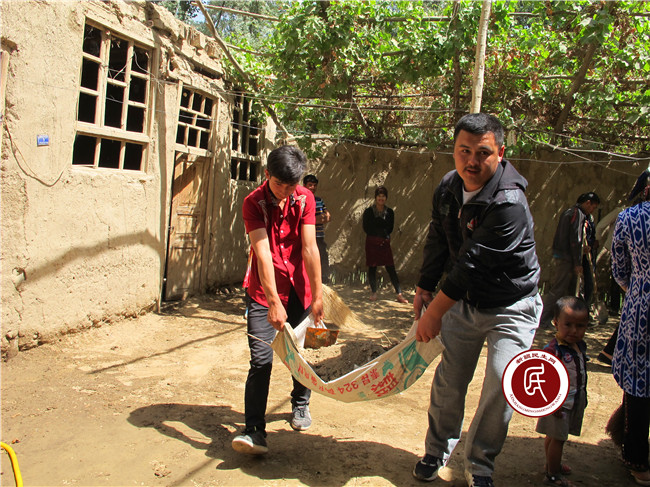 在“三位一体”人员的带领下,志愿者陆续来到孤寡老人家中“送温暖”。在孜那提·买提库尔班家里,大家热情地与老人打招呼,嘘寒问暖。大家齐心协力打扫庭院、收拾杂物、清理衣物……不多一会儿,整个院前屋后就被打扫的干干净净,房间也布置的明亮洁净。工作组还特意请来村里电工为老人家里拉好电线,安装开关,换上灯管,房间瞬间亮堂了,老人感动得热泪盈眶,握着志愿者的手久久不愿放开:“我腿脚不灵活,行动不方便,谢谢你们帮我这么大的忙,以后有空就来我家坐坐。”
