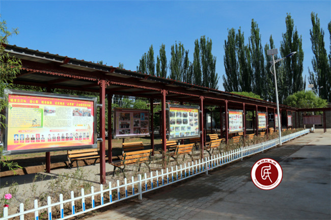 新疆民生网讯 (通讯员 梁栋)为了进一步宣传好党的惠民富民政策,用现代文化吸引和引领广大村民,加强基层文化建设,美化村容村貌,4月下旬以来,自治区发展改革委住英吉沙县萨罕乡库如克铁热克村(19村)第三批住村工作组多方筹措资金在19村休闲廊亭的基础上修建了文化长廊,由百余幅照片点缀的36块展版图文并茂,内容丰富,包罗万象,贴近群众,美化环境,令人赏心悦目。这是住村工作组构建基层文化活动新阵地、新平台、新窗口的又一新举措。