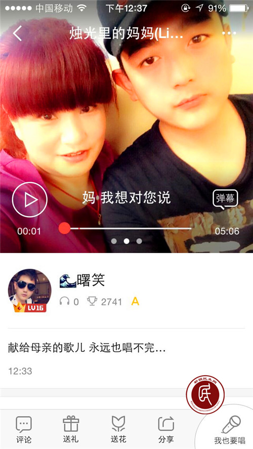 昌吉市文化稽查大队住三工镇长丰村工作组葛超是个帅气含蓄的大小伙儿,在母亲节之际,由于住村工作繁忙他没有给母亲送去康乃馨,也没有香甜的大蛋糕。他却用和母亲的合照为背景,第一次给母亲唱了一首《烛光里的妈妈》,送去孩儿最深情的祝福:您是我一生永远唱不尽的歌。妈妈,我爱你!