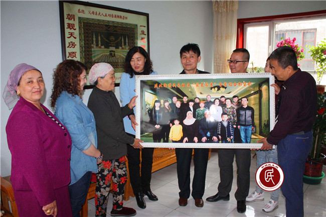 昌吉州国土资源局驻延安北路街道民乐社区工作组在母亲节之际,来到辖区“模范母亲”马玉珍的家中,送上了母亲节的祝福,祝福她长命百岁,幸福永远。并送上了“最美家庭”全家福合影照作为节日的礼物。临走时,工作组合唱了一首《感恩的心》,表达对“模范母亲”马玉珍最真挚的祝福!