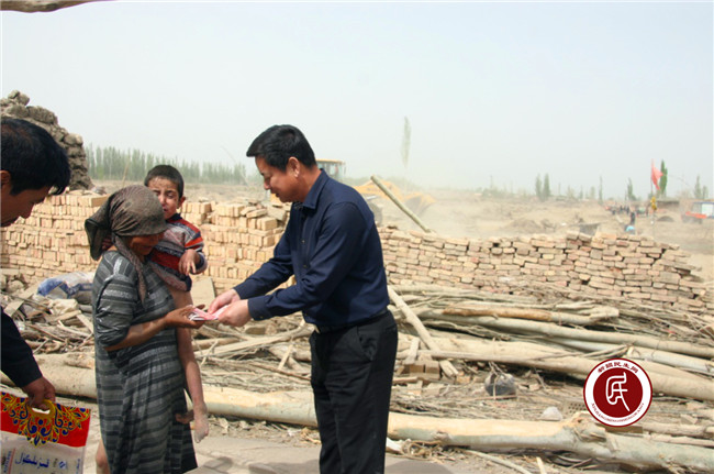 他们为贫困户带来了衣物、米、面、油,鼓励他们要积极的面对生活,并叮嘱家中老人要注意保重身体。当来到热依汗古丽·买买提明的家中,了解到她因丈夫去世,孩子又有残疾,家境十分困难时,当即捐赠现金、粮食和衣物。他们走后还打电话询问这些贫困户家里还需要些什么?这些活动开展,让贫困户感受到了来自社会大家庭的温暖。