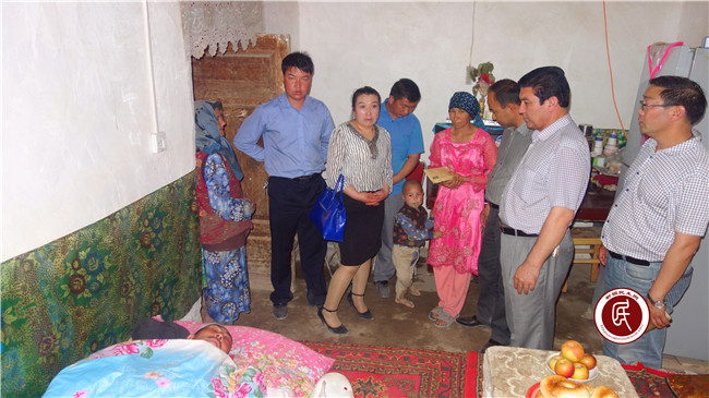 新疆民生网讯 (通讯员 艾依塔吉)阿克陶县人社局住玉麦乡库尔巴格村“访惠聚”工作组通过入户走访,了解到本村7组村民亚森·哈吉近期在交通事故中受重伤,由于家庭经济状况差、未能接受进一步手术治疗。“一方有难、八方支援”,工作组得知这一情况后,立即发出献爱心捐款倡议,得到了县人社局工作人员、本村村干部、宗教人士、学校教师的积极响应,工作组组长闫景来率先垂范,带头捐款,工作组成员、村干部、广大村民、学校师生、宗教人士主动捐出自己的心意。