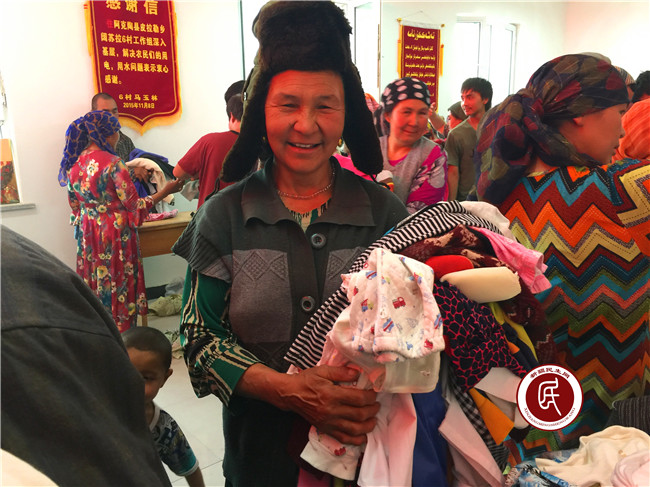 阔苏拉村村民很开心地选取衣服