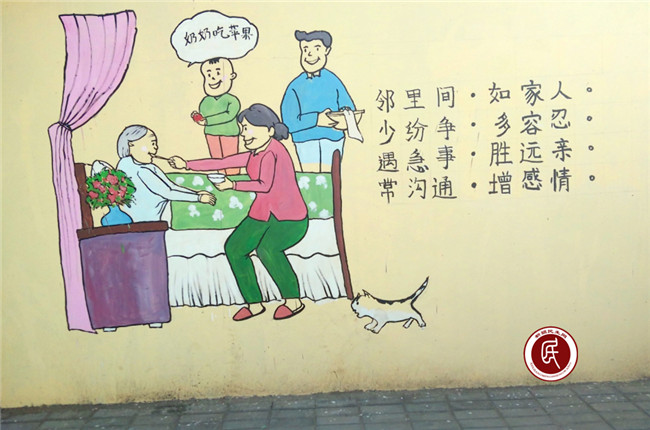巷绘选用的每句家训格言都传递着向善向上的力量,在群众驻足观看的同时,潜移默化中培育好家风,引领居民做事有参考,做人有准则的良好风尚。 辖区居民孙艳琴说,文化墙上的绘画让她们很受启示,每个人都有老的一天,人老了就盼着儿女多回家看看,多陪老人聊聊天,共享天伦之乐。真正让社会主义核心价值观融入生活、深入人心。
