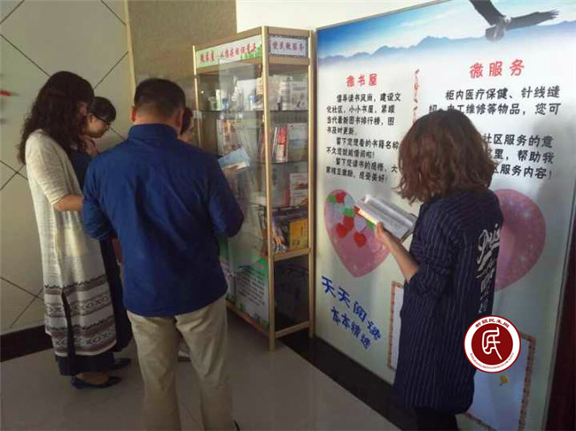 绿洲路街道庭州社区工作组开展“访惠聚”活动以来发现,每天在社区办事大厅前来办事的人很多,很多在等候区排队的居民无所事事,工作组出谋划策协助社区在办事服务大厅一角设立了“微书屋”, 让居民在等候的时候可以非常便利地随时翻看、学习。