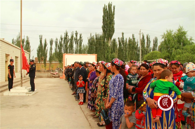 新疆民生网讯 (通讯员 刘方全 王立学)“以前我们村子里喝的涝坝水,人畜混饮,电也不正常…….现在我们村里发生了大的变化,我们要感谢党的好政策。”5月23日,伽师县和夏阿瓦提乡夏勒克村举行每周一次例行的升旗仪式,村民们都来了,妇女们身着艳丽的“艾特莱斯”服饰,每周的升旗仪式成了村民们生活中的一件大事。