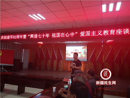 新疆民生网(阚久敏)今年八月一日是中国人民解放军建军92周年,在庆祝“八一”建军节的到来之际,扎实做好节日期间的拥军优属、拥政爱民工作,弘扬我党我军的优良传统,激发军民的民族精神和时代精神,进一步增强双拥意识和国防观念,也为了进一步加强返乡学生教育管理,城北路社区、黄鸭坑村、城北村联合组织退伍老军人和返乡学生与村民一起参加庆祝建军92周年暨“辉煌七十 祖国在心中”爱国主义教育系列活动。