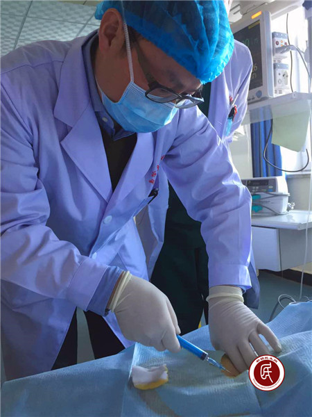 邵耐远主任进行右侧锁骨下静脉穿刺。